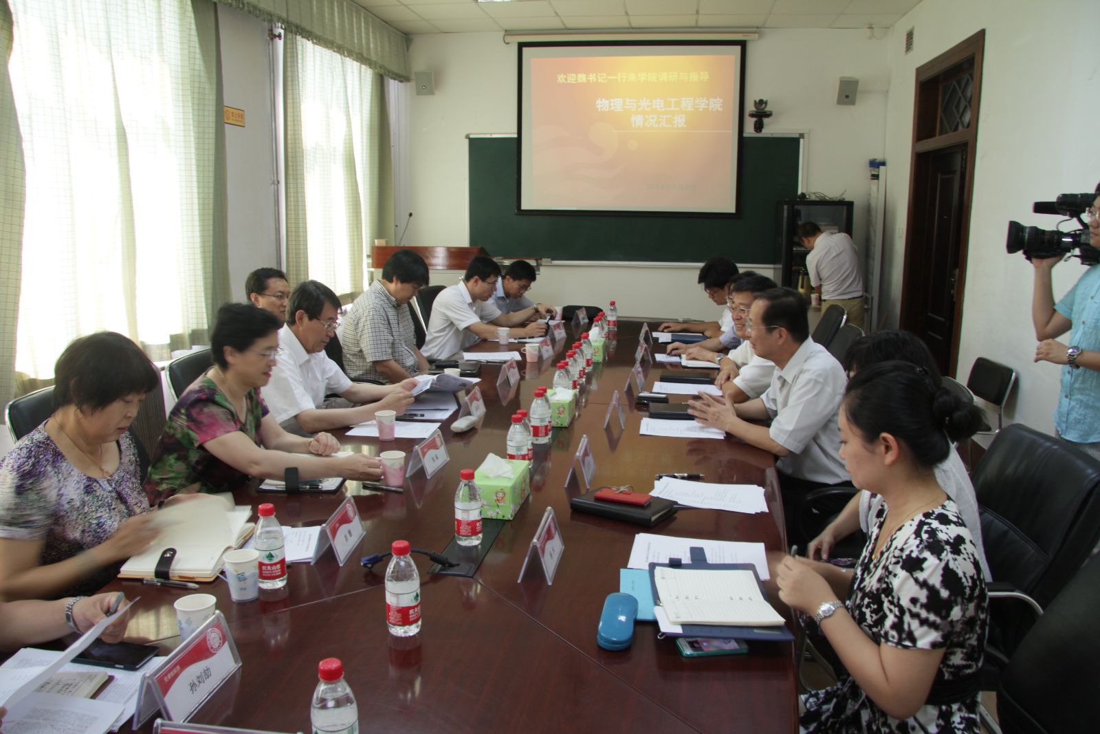 8月8日上午,学校党委书记魏小鹏在物理与光电工程学院系楼425会议室,调研开云(中国)官方工作。学校办公室主任宋丹、科研院院长宋永臣、教务处处长朱泓、研究生院副院长郭驰、发展规划处处长姚化成、组织部副部长孙刘劼、人事处副处长韩敏、校办秘书科科长苏克治陪同走访。学院党政领导班子成员赵明山、刘金远、周玲、丁洪斌、常亮、杨木出席会议。