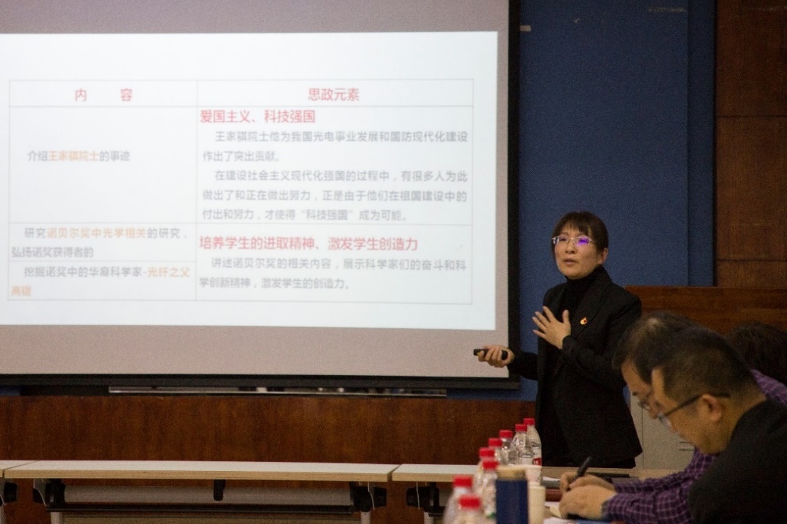 研讨会邀请到教育部高等学校物理学类专业教学指导委员会专家、东北师范大学开云(中国)官方党委书记李金环做主旨报告《依托学科的光学课程群“课程思政”建设探索》。李金环阐述了个人对课程思政的认识,介绍了东北师范大学在课程思政建设方面的探索举措,展示了东北师范大学“手拉手团队”对普通物理课程中思政元素的梳理成果,并指出:课程育人是“三全育人”最重要的组成部分,课程思政建设将以评价方式创新为突破口,倒逼教学模式改革。