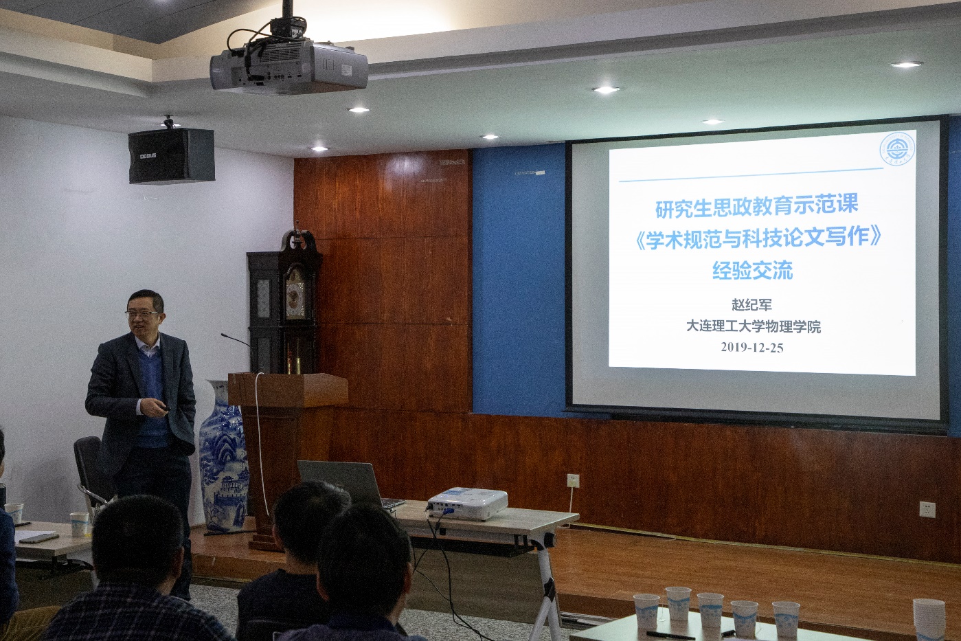 赵纪军教授在会上做《“学术规范与写作”校级课程思政示范课经验介绍》报告,结合“弘扬科学精神、提升学术品味、普及学术规范、恪守学术道德”四个课程核心理念,详细讲解了该门课程的主要内容与目标效果。他强调“在课程目标定位和教学内容设置时,将‘四个相统一’有机融入课程教学相关环节,以德立学、以德施教,挖掘思政元素,从学术规范入手,培养社会主义合格建设者”。