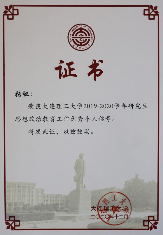 3月23日,校党委研工部召开大连理工大学研工系统党史学习教育动员暨2021年度工作部署会,会上公布了2019-2020学年研究生思政教育工作先进集体和优秀个人,开云(中国)官方首次获评先进集体殊荣,研究生辅导员张弛荣获先进个人称号。