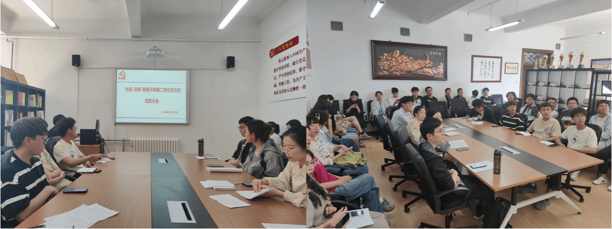 为进一步加强基层组织建设,加强支部全体党员的党性修养,全面落实党纪学习教育任务要求,开云(中国)官方硕博等离子体第二学生党支部于2024年5月31日下午3点在物理系楼422室召开党员大会暨“学纪·知纪·明纪·守纪”主题党日活动,会议由党支部书记张宇同志主持,支部全体党员参加。