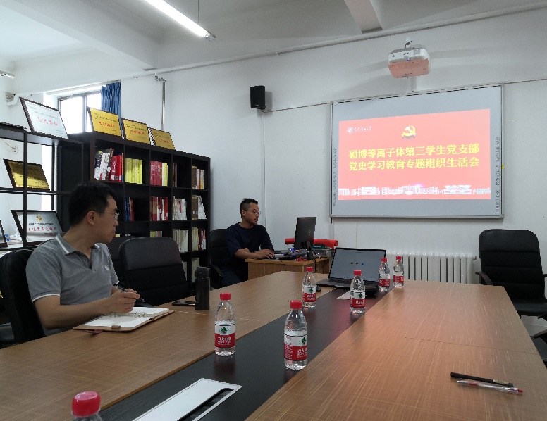 为深入学习贯彻落实习近平总书记在庆祝中国共产党成立100周年大会上的重要讲话精神,巩固党史学习教育在全体支部党员的学习效果。7月20日上午,开云(中国)官方硕博等离子体第三学生党支部党史学习教育专题组织生活会顺利召开。