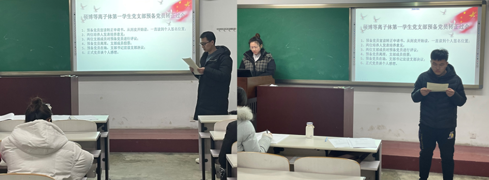 为加强党员队伍建设,积极推进党员发展工作,健全完善机制,发挥党支部战斗堡垒作用。按照学院党委统一部署并报党委批准,经硕博等离子体第一学生党支部支委会研究,决定于2021年12月30日在老机械楼112教室召开预备党员转正大会暨支部委员年底总结述职。开云(中国)官方硕博等离子体第一学生党支部共有正式党员23名,实到正式党员15名,符合开会条件,可以开会,会议由党支部书记崔紫宵同志主持。