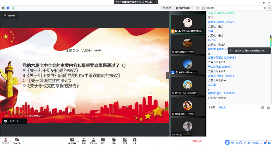 在两位老师讲解过后,参会的各位同学积极发表学习感想、参与相关知识竞答,巩固加深了本次学习的效果,同时提高大家的学习热情。