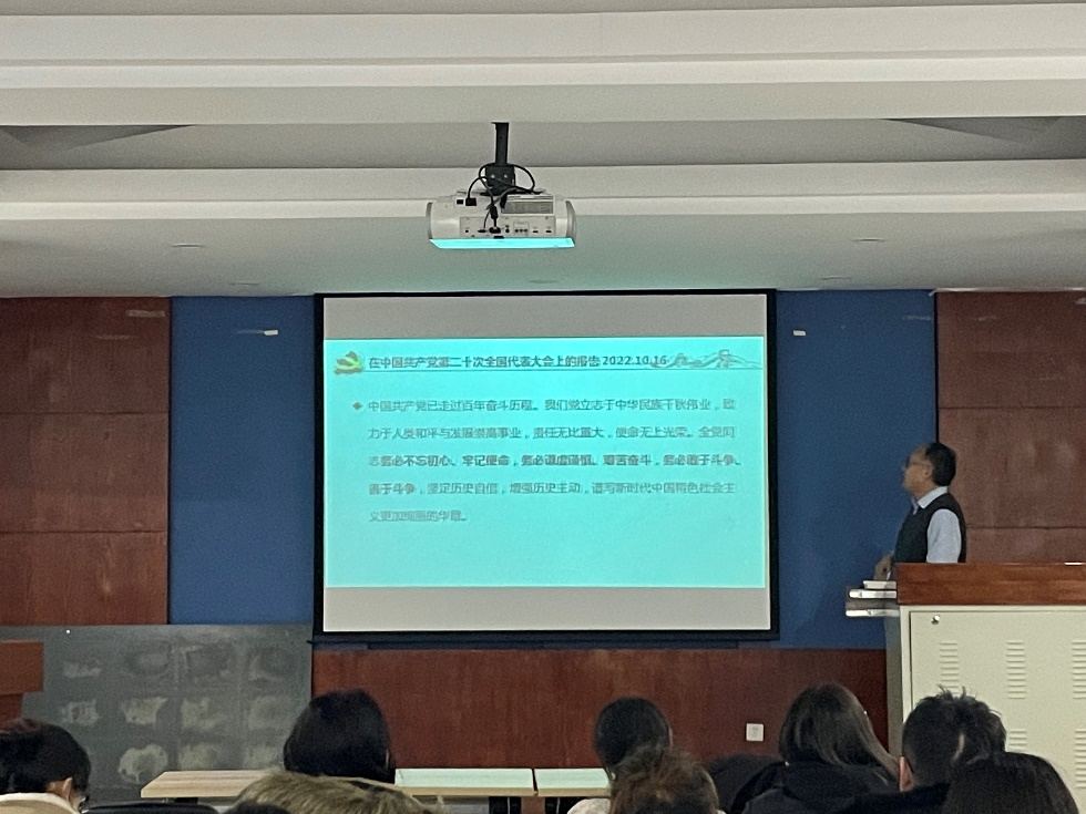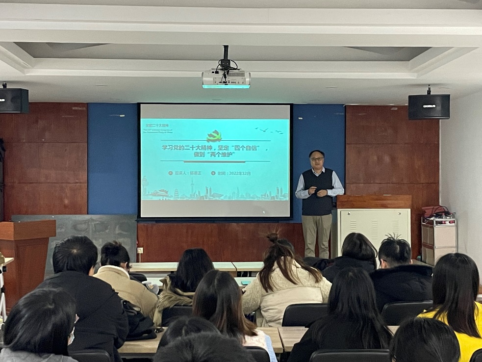 中国共产党第二十次全国代表大会于10月16日至22日在北京举行。为深入学习宣传贯彻党的二十大精神,按照学院党委部署,硕博等离子体第一学生党支部于2022年12月6日19:00在开云(中国)官方322会议室举行主题党日活动,特邀开云(中国)官方副院长杨德正老师为支部讲授《学习党的二十大精神,坚定“四个自信”、做到“两个维护”》的主题党课。本次主题党课的参与人员为全体党员同志、支部发展对象和入党积极分子。