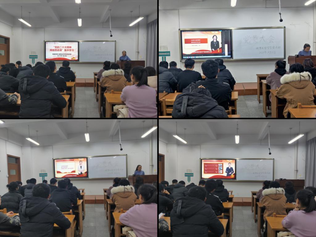 大会第二项,支部党员集中学习“党的二十大精神网络思政课”。此次网络思政课从“弘扬伟大建党精神 赓续党的红色血脉”、“弘扬中华传统美德”和“新时代新征程好青年的责任担当”等角度深刻解读了党的二十大精神,对支部党员理解党的二十大精神内涵具有重要意义。与会党员纷纷表示,作为新时代青年和学生党员,我们应当自觉弘扬伟大建党精神,不负青春,不负韶华,在实践中增长才干,切实把党的二十大精神落实到岗位上、体现在行动中,努力成长为国家建设发展所需要的人才。