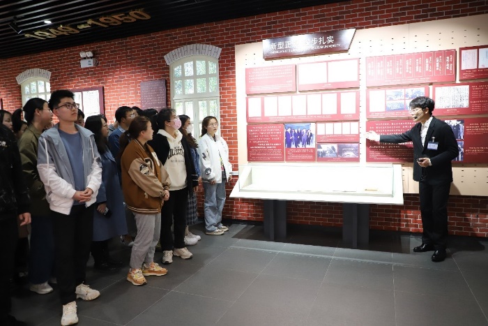 活动伊始,同学们跟随着讲解员的步伐,有序进入展厅。讲解员同学对序厅、沿革厅、人物厅、校友厅、国际礼品厅等五大展厅展开详细的讲解。