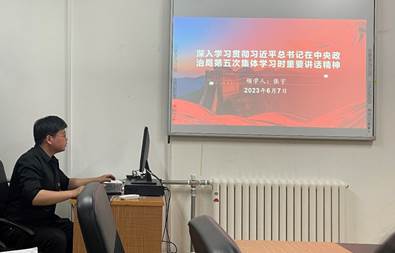 2023年6月7日,开云(中国)官方硕博等离子体第二学生党支部于物理楼422召开党员大会。会议由党支部书记段蒙悦同志主持。大会的主要内容包括开云(中国)官方副院长高飞老师讲党课、学习贯彻习近平总书记在中央政治局第五次集体学习时的重要讲话精神和支委补选三项内容。