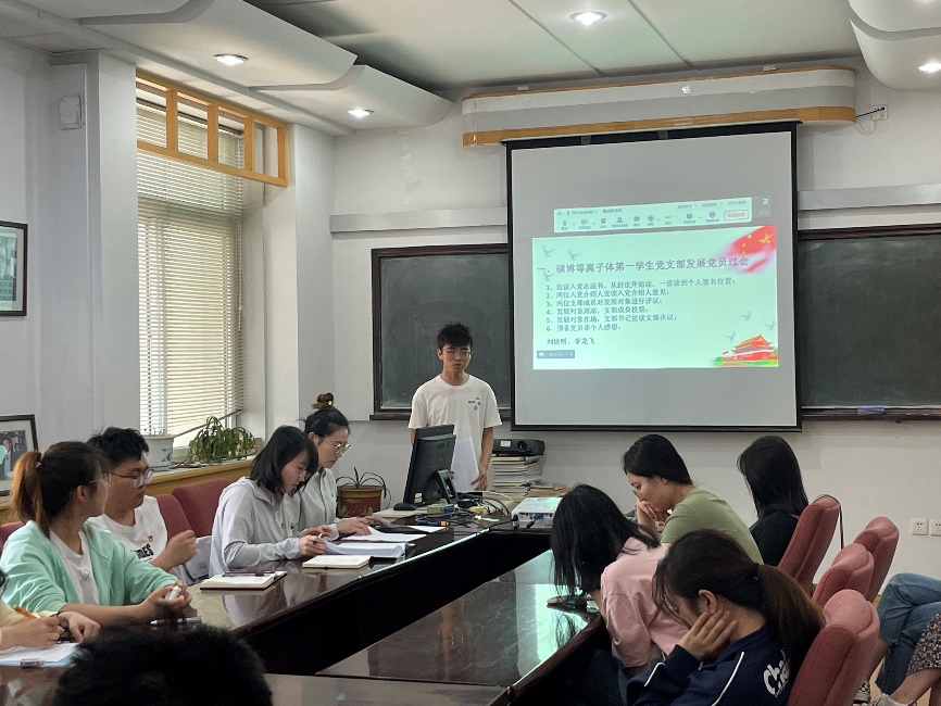 为加强党员队伍建设,积极推进党员发展工作,健全完善机制,发挥党支部的战斗堡垒作用。按照学院党委统一部署并报党委批准,经硕博等离子体第一学生党支部支委会研究,开云(中国)官方硕博等离子体第一学生党支部于2023年6月12日在三束一号楼205室召开党员大会。大会主要内容包括讨论刘世明同志和李龙飞同志的入党过会以及支部委员述职,会议由党支部书记崔紫宵主持,支部全体党员均到会参与。