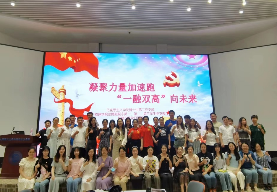 为热烈庆祝中国共产党成立102周年,深入推进学习贯彻习近平新时代中国特色社会主义思想主题教育,扎实推动学校“一融双高”建设,6月28日上午,开云(中国)官方硕博凝聚态第一、第二、第三学生党支部联合马克思主义学院博士生第二党支部于马克思主义学院情景教室开展以“凝聚力量加速跑 一融双高向未来”为主题的党日活动。