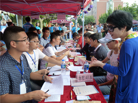 物理与光电工程学院秉承多年来敏学笃行的优良传统,以“逐梦青春,你我同行”为今年迎新工作主题,突出互帮互助的同学情谊在学生成长成才过程中的高度重要性,以学院培养出的“中国好寝室——兄弟寝”为着眼点,对迎新宣传品和新生报到环节进行精心设计;学院在迎新现场为2014级新生们准备了精美的“梦想卡片”,激励新一批的物理学子能够在大学四年中志存高远、不忘初心,努力发展自我,成就未来。在“物理蓝”的点缀下,物理与光电工程学院的迎新工作为新生和家长留下深刻记忆。