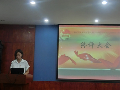 7月10日晚,物理与光电工程学院2013-2014学年度团支部建设终评大会于物理系楼322顺利进行。出席本次大会的嘉宾及评委有物理与光电工程学院团委书记佟西原老师、13级辅导员俞洲老师、学生会副主席兼团委宣传调研部部长孙雨周以及团委组织部部长崔佳琪。