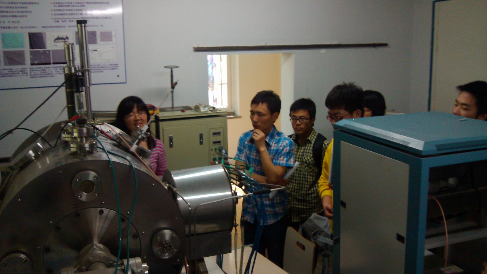 通过前期的工作安排与协调,此活动得到了学院领导以及各实验室负责人的高度重视以及全力支持。5月15日下午, 2012级队全体学生分为三队,依次参观了位于高新园区火炬路的大连市光电技术研发中心、位于物理与光电工程学院院楼的辽宁省先进光电子技术重点实验室和位于新三束实验室的三束改性教育部重点实验室暨等离子体科学研究中心。