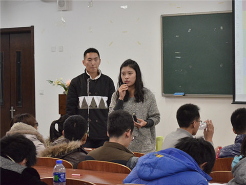活动开始,由主持人刘昶简单介绍了杜石桥、王一鸣及王凌霄三位同学的优异成绩,随后即是三位同学对于自己学习成长经历的经验交流。荣获多项奖学金并在众多领域成绩突出的杜石桥首先向大家介绍了自己改变消极态度,积极学习并最终取得各方面成功的经历,鼓励大家端正学习的态度,战胜自己心里的阴影。荣获多项奖学金的王一鸣通过介绍自己在学习和发展道路上的成功经历,讲述多种处理问题和突破自我的有效方法,鼓励大家突破自我,向更高处发展前进。荣获多项奖项及荣誉称号的王凌霄阐述了自己对于学习的真正意义以及当今学子在学习过程中普遍存在的盲点和疑惑的看法,鼓励大家找到真正适合自己的学习目标和方法,并找到自己学习的真正目的所在。在此之后,三位同学又认真回答了在场观众的问题,对大家的疑问均提出了独到的见解。