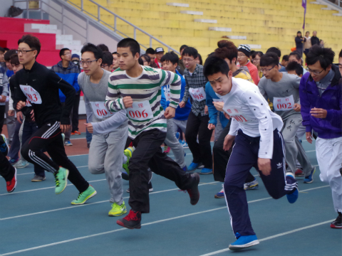 本次比赛分为学部和学院两大组,起点在中心田径场,运动员们需要跑到研教楼再返回起点。比赛开始前,运动员们就已经戴好号码牌,做了充分的准备活动。下午3:30,比赛正式开始。随着一声哨响,运动员们如离弦的箭般冲了出去。尽管天气稍有回暖,但还是寒风阵阵,然而运动员们却没有丝毫怨言,他们每一个人都把坚毅写在脸上,把坚强装进胸膛。尽管已经气喘吁吁,大汗淋漓,但他们用无比顽强的意志支撑着自己向目标挺进。路边观众此起彼伏的加油呐喊声,不仅是为了他们的体力与速度,更为了他们的执著与坚强。
