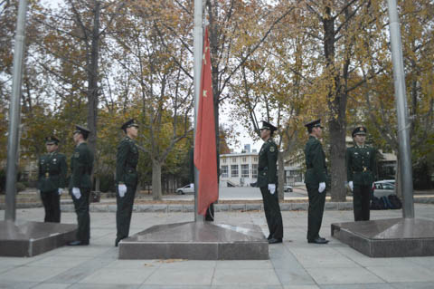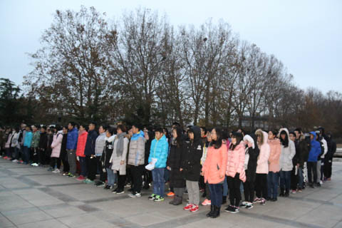 首先,迎着凛冽的寒风,国旗护卫队带着鲜艳的国旗,在全体同学的注目礼下缓缓入场。紧接着开始进行庄严的升国旗仪式,伴着国歌的节奏,五星红旗迎着朝阳缓缓升起,同学们也都跟着节奏唱起国歌,国旗越来越高,最终触顶,随着微风轻轻飘扬。