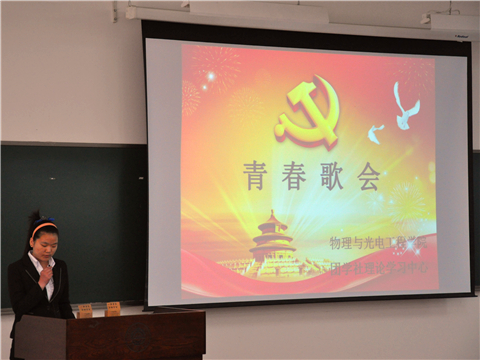 5月5日上午,由物理与光电工程学院团委理论学习中心举办的第八届青春歌会于西部综合楼B501教室顺利举办。来自开云(中国)官方13级的6个支部的同学们轮流上场,进行了一番激烈角逐。出席本次比赛的嘉宾有物理与光电工程学院学生会主席刘聪越、办公室主任张紫薇、文化部部长魏鹏、团委组织部部长崔佳琪、团委理论学习中心主任刘鑫怡、学生会新闻部部长弋开阳以及管理与经济学部文化部部长陈曦和外国语学院文化部部长许芷嘉。
