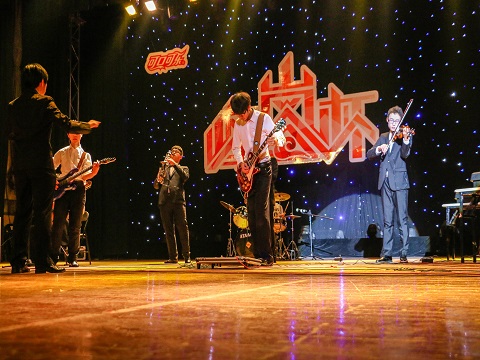 且看今日,物理器乐团在山上礼堂大放异彩。优美抒情的小提琴,深沉平静富于变化的萨克斯,细腻丰富表现力强的吉他,气氛热烈节奏鲜明的架子鼓,他们在物理乐器人的完美融合中奏出华丽的乐章。跳动的音符在弦上迸发,激昂的旋律从指间流淌,一曲激情澎湃的《VICTORY》,向人们昭示着前方的希望之光,梦想就在不远处,胜利就在不远处。物理器乐团的完美演出博得一阵又一阵掌声。