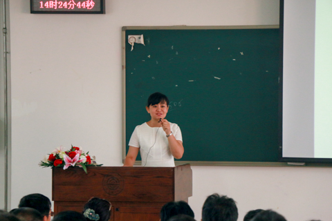 接下来是杨木老师讲话。她从学习、生活、就业三方面为大一新生家长提出建议。杨木老师强调大学学习的重要性。特别是现今就业压力大,要得到企业单位的认可,专业知识的学习显得尤为重要;“让孩子学会自己选择,保持对世界的好奇心”。杨木老师希望同学们在学习成绩优良的基础上积极参加各类活动比赛,发展自己的一种兴趣,注重对综合素质的培养;新生刚入学家长抽空与孩子多沟通,关注的孩子的情绪,帮助他们调整好心态,引导他们关注社会,尽快融入大学生活;大学里同学们都是独立生活学习,安全问题更显突出,家长们要注意孩子节假日的去向,把好安全关,让孩子度过一个充实的大学生活。要做到这些,最关键的是家长与老师的互相配合。
