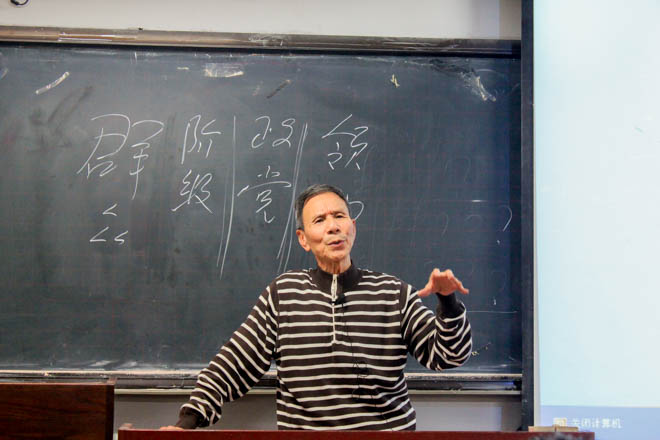 回答完同学们的问题,马宽教授走下讲台,向同学们讲述长征中鲜有人知的故事,并与大家一起游戏。“我画你猜,猜长征场景”的小游戏使现场气氛十分活跃,达到高潮。最后马宽教授对此次活动进行总结。主持人宣布本次活动到此结束。
