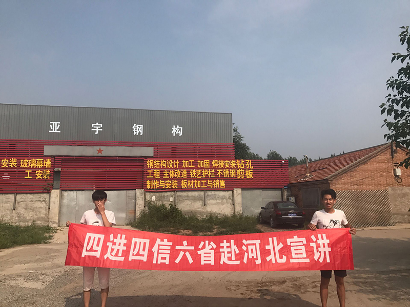 成员们到达河北省廊坊市亚宇建筑材料有限公司,实践队伍为本次宣讲准备宣传ppt,宣传条幅以及宣传手册为实践的顺利进行打下了基础,进行内容宣讲后,很多之前从未接触过此类知识的商家对此次宣讲内容非常感兴趣,纷纷进行提问,其实很多从事基建行业的商家都3员帮助他们关注相应的微信公众号方便其继续关注四进四信以及更多的国家政策,以便于他们能跟上时代的脚步。最后成员们与企业的管理人员进行了沟通签署了大连理工大学社会实践基地协议。