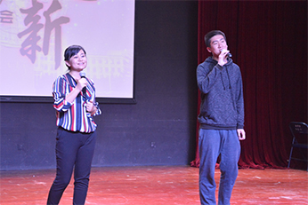 代班长、军训教官和导员们的采访视频使大家了解到不同角色对17级新生的期许和祝福;令人耳目一新的互动游戏让全场师生都参与进来。晚会中有感动、有欢乐、各种情感交织在一起,绘成一幅精彩的画卷。话剧《广告双子星》表演诙谐幽默,语言古灵精怪,在演员们夸张而富有感情的表演中展现出职场竞争中的浓浓兄弟情,凸显了团结合作的重要性,将晚会推向高潮。