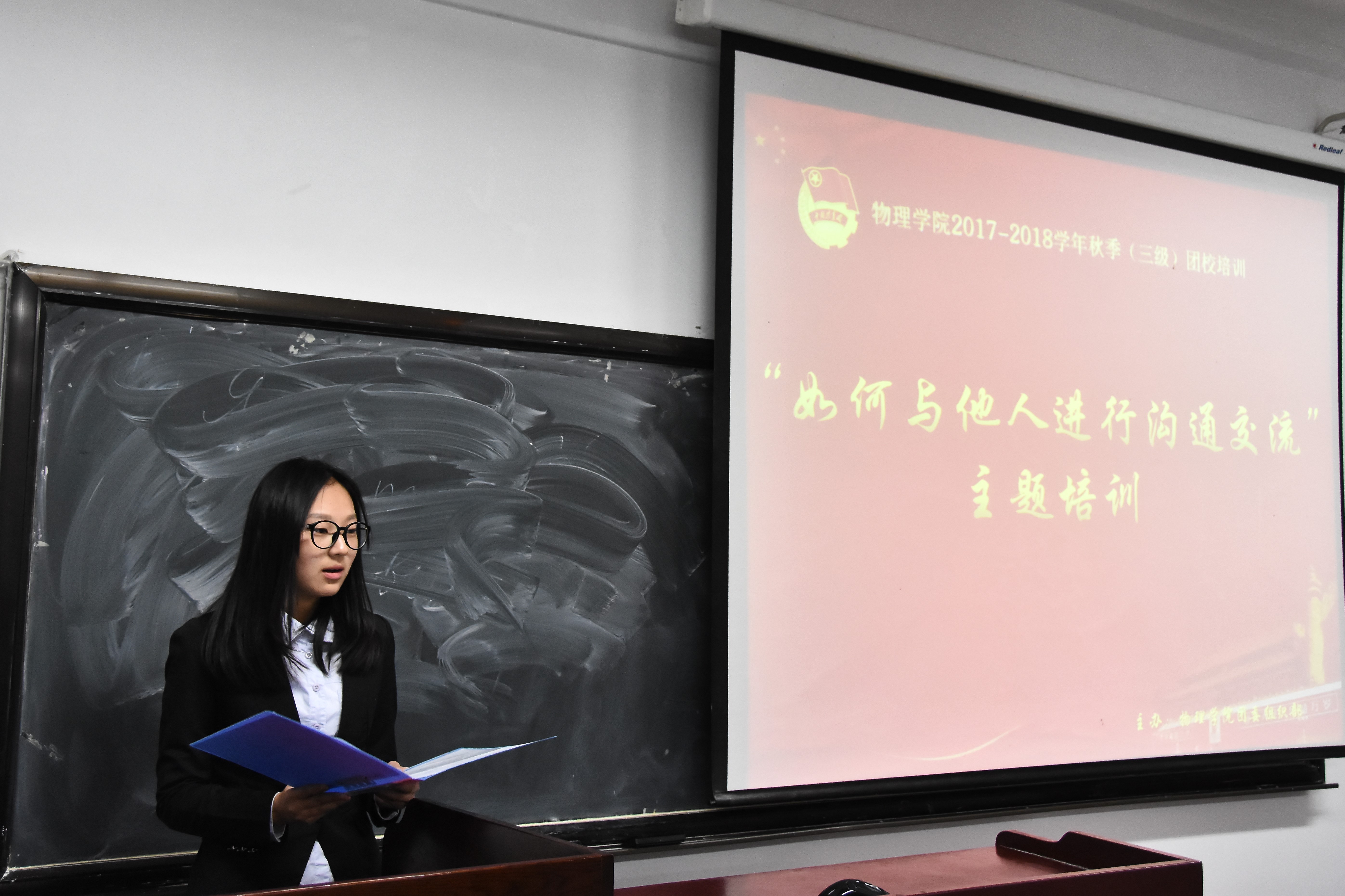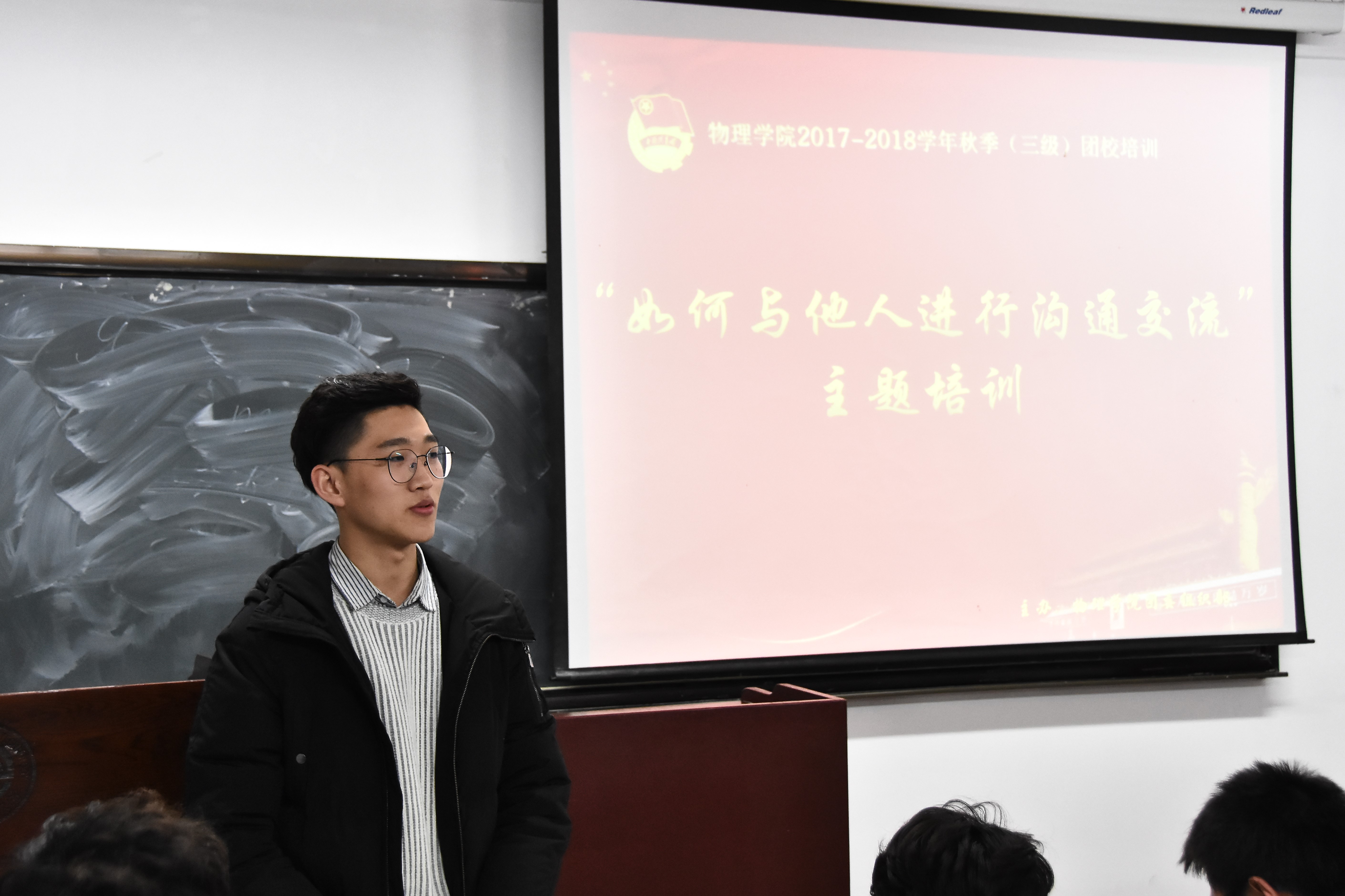 接下来是由职业规划与就业协会会长孟令刚上场,为同学们讲述如何与他人进行有效地沟通交流。孟令刚学长的讲述幽默风趣,从线上与线下两个方面讲述与人沟通的一些小技巧与注意事项,包括微信、朋友圈的使用,以及与陌生人面对面交流的方法,并结合生动形象的例子,让同学们受益匪浅,幽默的语言也引起全了阵阵欢声笑语。在提问环节结束后,本次团校培训正式结束。这次活动对同学们的实际生活工作有很大的帮助,很多同学们一直想要了解的问题都得到解决,现场的气氛也十分活跃,活动取得圆满的成功。