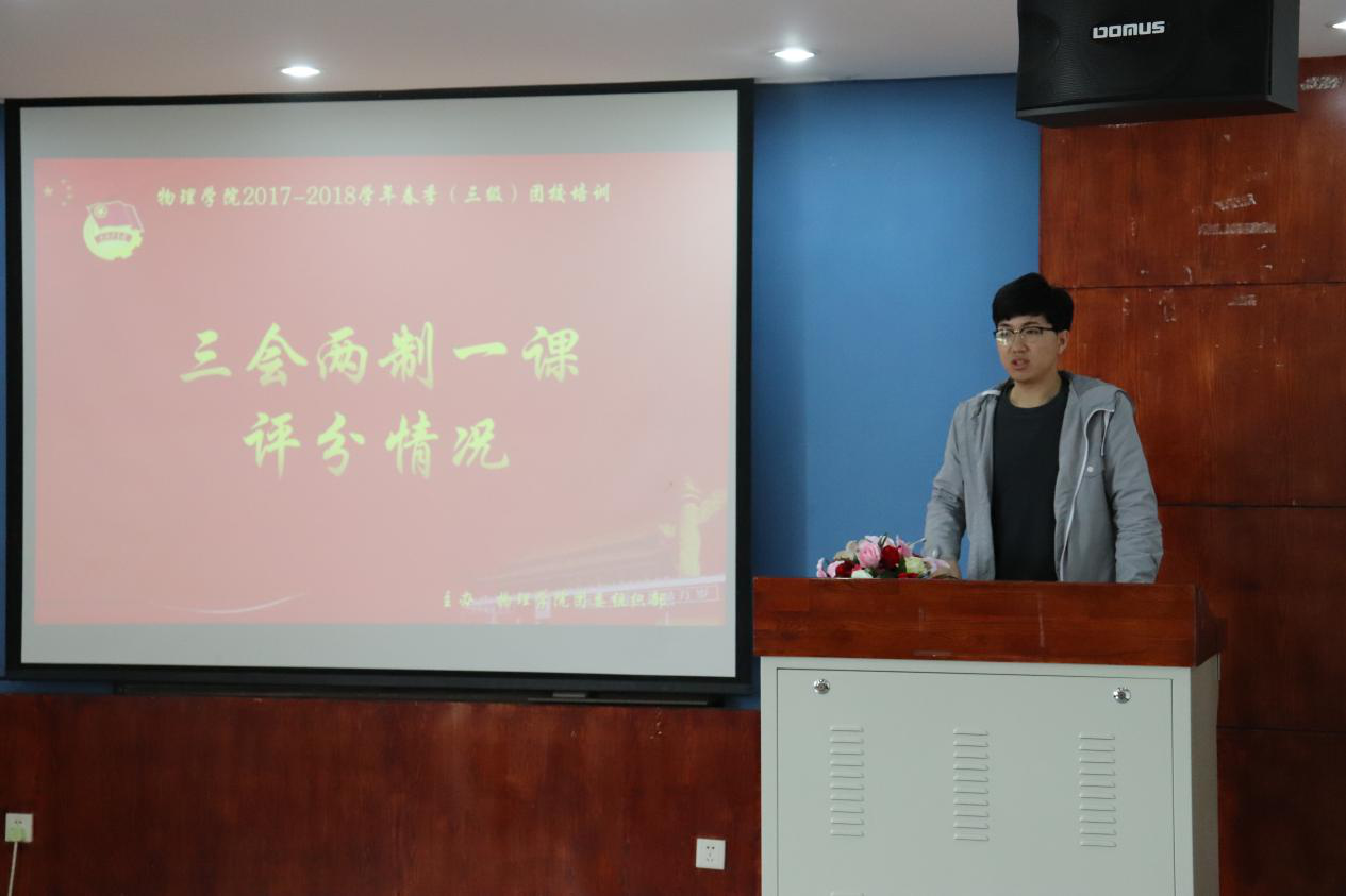 首先,由逄金鹏对团支部工作中的支部大会、支部委员会、团小组会、团员教育评议制度、团员年度团籍注册制度和团课即“三会两制一课”的评分问题进行说明;之后林子超上台对“旗帜在线”活动进行简单介绍,号召同学们参加“旗帜在线”活动;