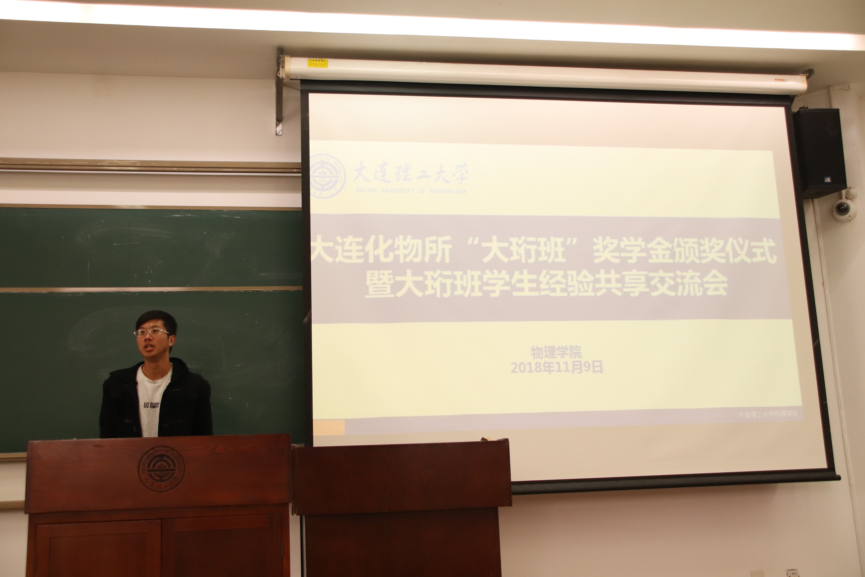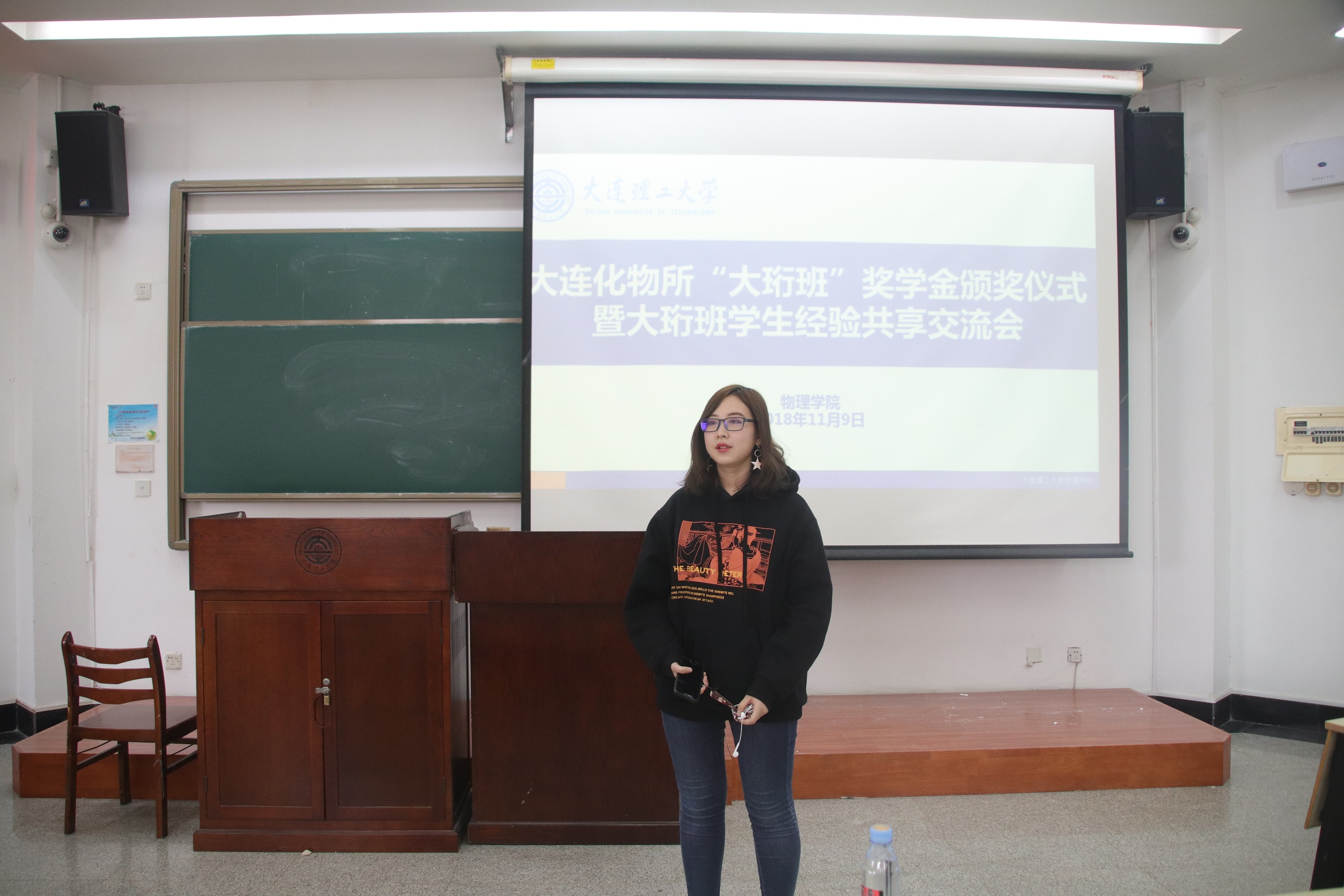 大连理工大学王大珩物理科学班(大珩班)是中国科学院大连化学物理研究所(大连化物所)与我校为联合培养科研型人才而开设的创新实验班。为更好地建设大珩班、促进大珩班和大连化物所之间的合作、加强大珩班各年级学生之间的交流,开云网页版于11月9日中午12:30在综合教学楼一号楼358教室召开“大连化物所‘大珩班’奖学金颁奖仪式暨大珩班学生经验共享交流会”。本次会议由开云(中国)官方团委书记纪丹红主持,邀请大连化物所研究生工作部副主任熊川男给获奖学生颁发奖学金奖状。