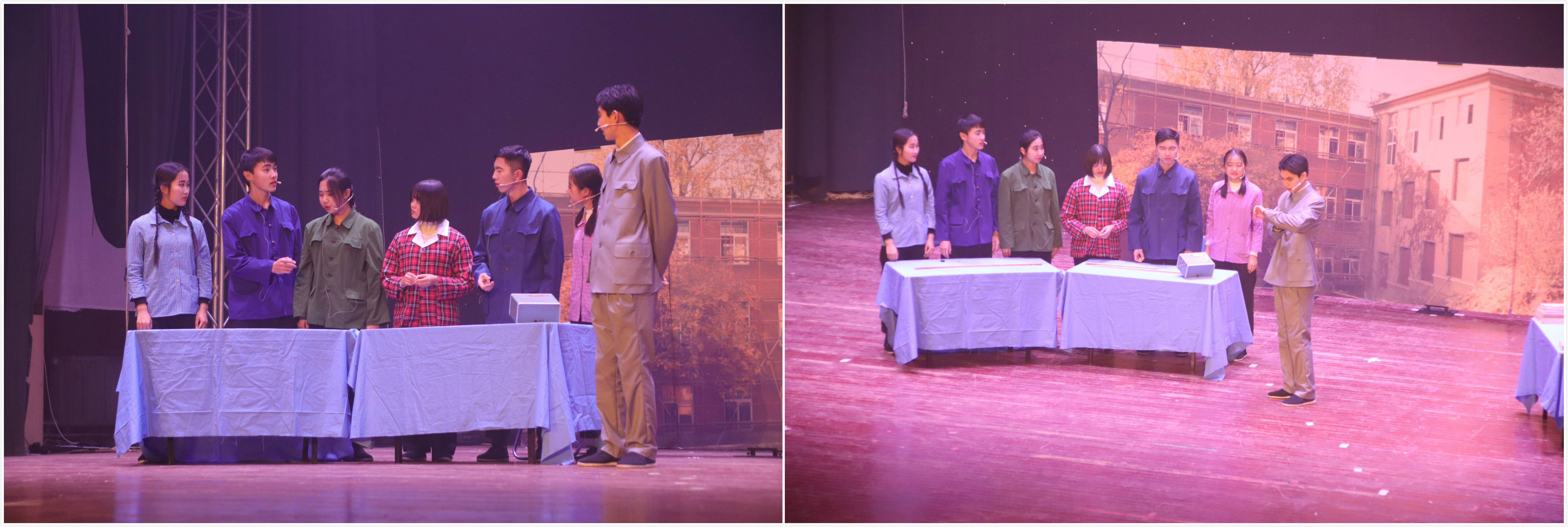 同学们的表演从1949年王大珩从英国回国拉开帷幕。刚从英国归来的王大珩辗转来到解放区,参与筹建大连工学院,并出任第一任应用物理系主任。舞台上每一个道具,无一不在展示着当时一穷二白的教学条件。在饰演王大珩的王鼎钧同学脸上,表现出来的是王大珩先生带领学生们从零开始的决心。面对英国昌司公司的盛情邀请,面对重重困难,王鼎钧同学将王大珩先生那留国的决心,那迎难而上的精神,表现的淋漓尽致。“没有仪器,我们就自己动手修,没有老师,我就亲自去请。应用物理系刚刚起步,有困难是意料之中的,可方法总比问题多,问题总会被解决。”王鼎钧同学说出这句台词时,不仅仅是王大珩先生对他学生的警示,更是对我们后来人的教育。