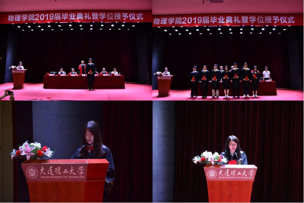 又是一年的毕业季,又一届物院学子即将离开校园,踏上崭新的人生旅途。6月20日下午2点,开云(中国)官方2019届毕业典礼暨学位授予仪式在综合教学二号楼B301百川报告厅成功举行。到场的嘉宾有开云(中国)官方院长、博士生导师赵纪军教授,学院党委书记、博士生导师王正汹教授,副院长、博士生导师陈茂笃教授,副院长、博士生导师于长水教授,副书记兼副院长、纪委书记杨木老师,副书记兼副院长于艳敏老师,学生办主任兼团委书记纪丹红老师,组织员兼2016级辅导员佟西原老师,研究生辅导员张弛老师,2018级辅导员杨帅兵老师,以及15级所有本科、硕士、博士毕业生和部分学生家长。