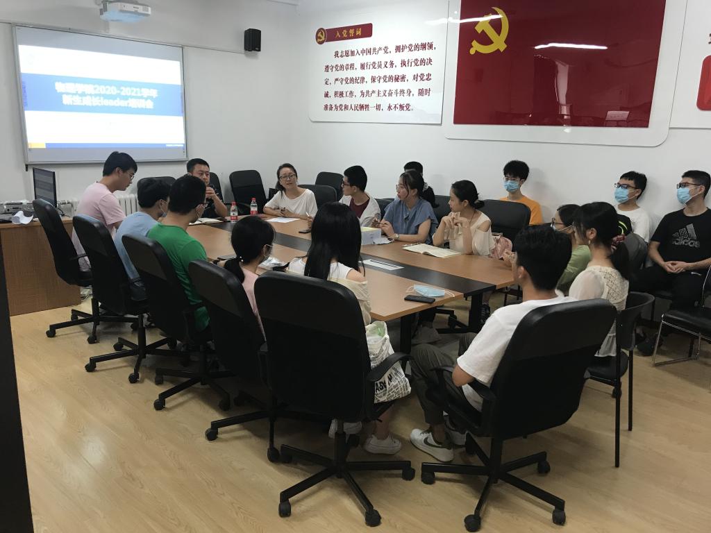 接下来,周福良更深一步地与leader们交流,交代具体的迎新工作部署。在特殊的疫情期间,学院乃至学校都做出特别的工作要求。周老师向同学们耐心解释,leader们都理解这些特殊情况下的特殊要求。另外,周老师还要求leader积极配合学院的迎新工作,让学院的迎新工作顺利地开展,把积极阳光的物院展现给所有新生,与新生一起成长,一起建筑物院的未来。