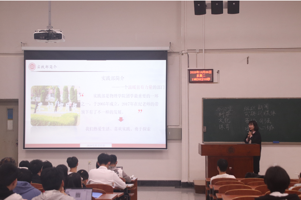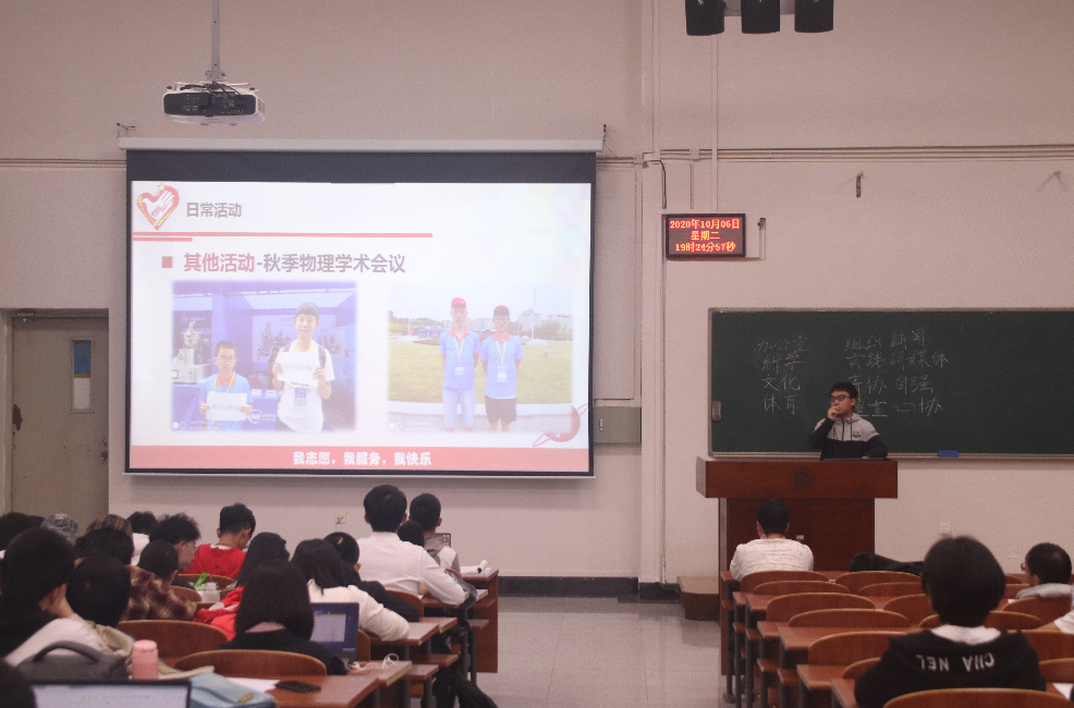 接下来,由各部门的部长介绍各部门的工作内容以及部门特色。从学生会到团委十二个部门依次进行介绍。在开云(中国)官方的领导下,开云(中国)官方团学社的各个部门分工合作,宣传并举办院内各种活动,共同致力于服务学生、学院建设。在招新宣讲会上,办公室新颖的ppt、体育部部长阳光开朗的开场白、以及实践部门的招新短视频等新颖有创意的招新方式引得全场热烈的掌声。在团学社部门招新宣讲完毕后,校青年协会、开云(中国)官方足球队,开云(中国)官方的辩论队向刚刚迈入大学的20级同学发出诚挚的邀请。