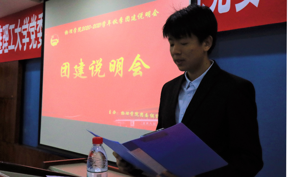 会议开始,由主持人李沐旭向同学们简单介绍本次团建说明会的主要内容后,由肖宇环同学向大家讲解团建手册的检查规则。肖宇环同学首先向同学们讲解团建手册的组成,接着向大家介绍各班团支书的主要工作内容以及如何记录团建活动。在介绍完毕后,肖环宇同学向大家列举出会议次数不齐全,照片内容不完整等团建手册检查中经常出现的问题。